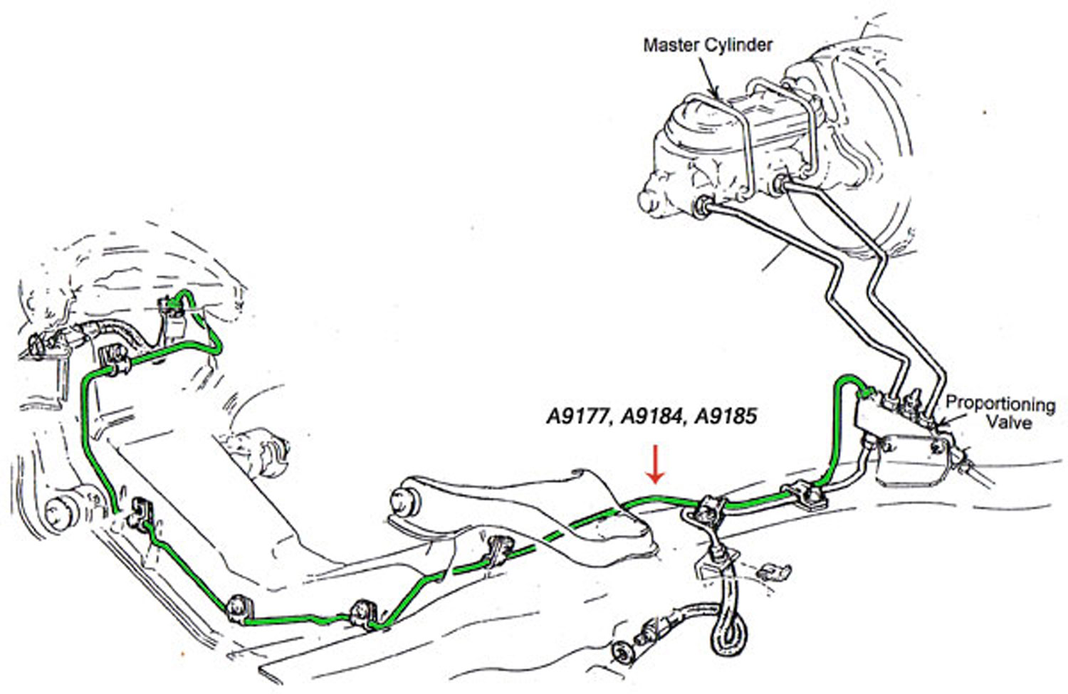 For restorers the availability of pre-bent, reproduction steel brake lines is a blessing. Why, because fabricating brake lines at home with the correct length, bends, armor, fittings and flares is darn near impossible. Fortunately, reproduction brake lines from Eckler's meet all of the above criteria, the length is perfect, the bends are just like the originals, correct armor is used where applicable, the fittings are the correct size, shape and color, the lines have 45?? double flares and they are made of steel just like the factory installed lines. You'll also be pleased to know these lines meet or exceed all D.O.T. specifications for safety. The next thing you might ask as a restorer is why do I need to replace my original brake lines at all? The answer is because D.O.T. 3 & 4 brake fluids (the fluid the factory used and the fluid almost everyone uses) is hydroscopic, which means it draws fluids in, chiefly water, which over the years will corrode steel lines if the fluid was not changed regularly (and most owners did not). So, there's a good reason to change them and great reproduction brake lines available for your use. Count on Eckler's for the very best in reproduction steel brake lines. Did you know? On steel brake lines and particularly stainless steel brake lines (because of their hardness) it is especially important to seat the flared lines into the brass blocks. The best way to do this is with brake line wrenches so you can apply adequate torque to seat the fitting. Most open end wrenches tend to round-off the fitting before it is fully seated. It is also interesting to note that brass brake blocks are ideally meant for a one-time use only.1974-82 (C3) Front Crossover Steel Brake Line