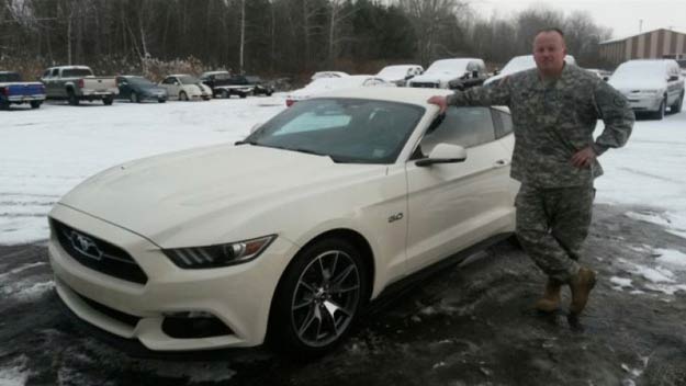 The first Mustang was delivered to Army Maj. Del Boyer, shown above. While Maj. Boyer took delivery in New York, the raffle was open to servicemembers both at home and abroad.