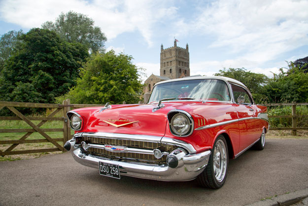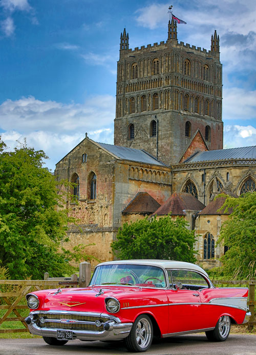 Early on in 2015, Jenny contacted us to ask if she could use our car for a photo shoot for an article in Chevy Classics and we were only too pleased to accept. We travelled to Tewkesbury, UK, and met Jenny at Tewkesbury Abbey, which she used as the backdrop.