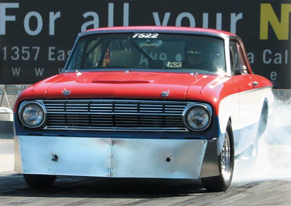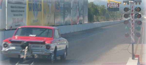 I started building the car in 1995. It has been, and is still, street legal. I have license plates that are current on it now. I’ve had approximately 18 different engines in the car; from a 580-horse pump gas engine, to the current 1900 horse unit. Transmissions range from a Jerico 4-speed tranny to the current Powerglide. I was the number one qualifier for 3 years in a row at the Super Chevy event in Pomona where they had a special event for street cars. I didn’t win, but it was fun being the top qualifier at a Chevy meet with a Ford! I’m still modifying things on the car to harness all of the power. Gil Navarez in Las Vegas, NV, did the initial tuning on the chassis dyno. He has been extremely helpful in tuning the turbo motor so as not to damage anything, yet have enough power to race. Thanks to my crewman George Derrington who attends all of the races with me. I thank my God for the opportunity to be able to play at this level, and for each safe pass I make.