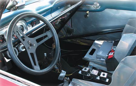 Stock dash, Auto Meter gauges, Painless wiring harness, aluminum seats. F.A.S.T electronic fuel injection that is sequentially controlled, laptop tunable, Race Pack data acquisition system to analyze each run and record information. Crow Enterprises harness and belts. Stroud parachute.