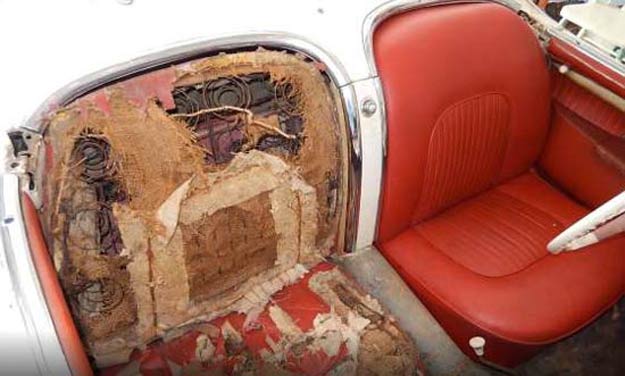 Fisette has pulled old cars out of barns before. Mice had built a nest in the coil springs using factory burlap. But, the driver’s seat was “perfect.” Rodents had moved into both cars. As the men looked over the Corvettes, Fisette and Lewis went “back and forth on price,” on the ’54. The exchange was friendly and fun.