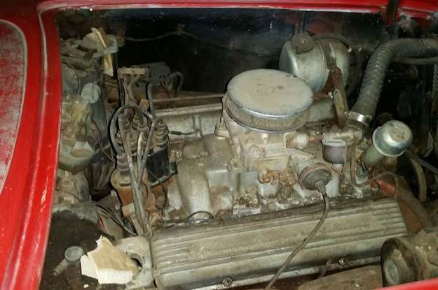 The 340-horse 327 found intact, minus air cleaner, preserved inside for fear of theft.