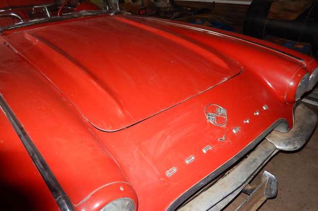 Behind the ’54 is a ’62 'Vette, also stored on blocks for over 40 years.
