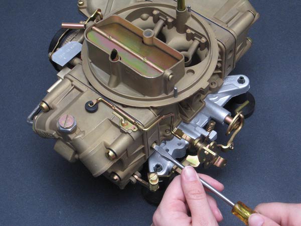 This is a C8OF-AB. Note the screwdriver at the driver side idle mixture screw. Also note there is NO linkage ball on the primary throttle shaft arm.