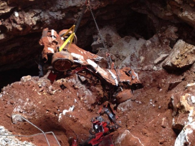 When construction crews manage to pull the Mallett Hammer out of the hole, we’re sure they will breathe a sigh of relief after working tirelessly to retrieve the priceless sports cars from Mother Nature’s firm grasp. We’ll keep you posted on the situation, in the meantime, you can see what the recovery team is up to through the National Corvette Museum’s live webcams.