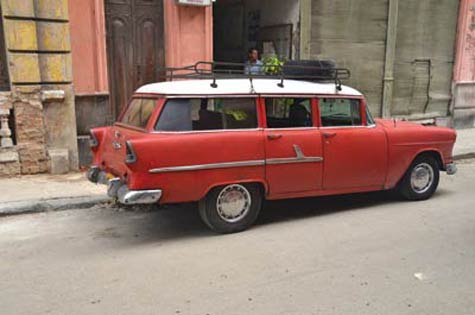 We were told that Cuba receives shipments of junk vehicles and parts from Russia, from which owners would scavenge for solutions. Since truck parts are the most available, many cars now have diesel engines. It was not uncommon to see a Chevy with its backside hoisted above an oversized truck’s rear end. Details such as emblems were sometimes hand-painted or had decals applied. And many cars took on a customized look as a result of the creative measures taken by their owners to keep them operable.