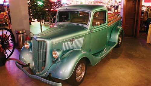 Besides the dealerships, David and Sue have two boutique shops in downtown Glendale, AZ, named “Heart String”, and David has this 1935 Ford Pickup done up with the shop info printed on the stakes.