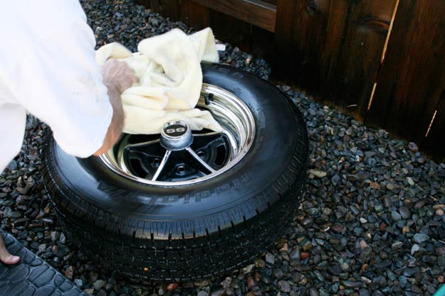 The wheel and tire get completely rubbed down again, this time making sure both are totally dry.