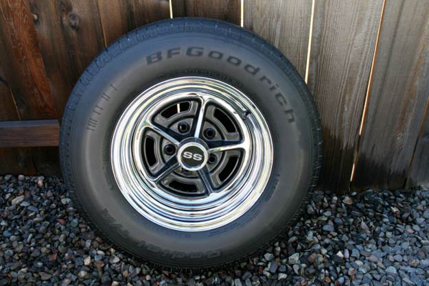 Our tires are BFGs, the original factory 14” size, and the wheels are the SS style 5-spokes. Both are approximately 5 years old, but after the beating they’ve taken over the past few months, they look worn out– definitely not show-ready.