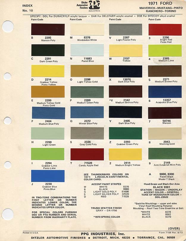 By 1972, Ford still offered a vast selection of colors, but the party names had all vanished. Grabber Blue was the sole survivor of the “Grabber era”, and was axed after the 1974 model year.